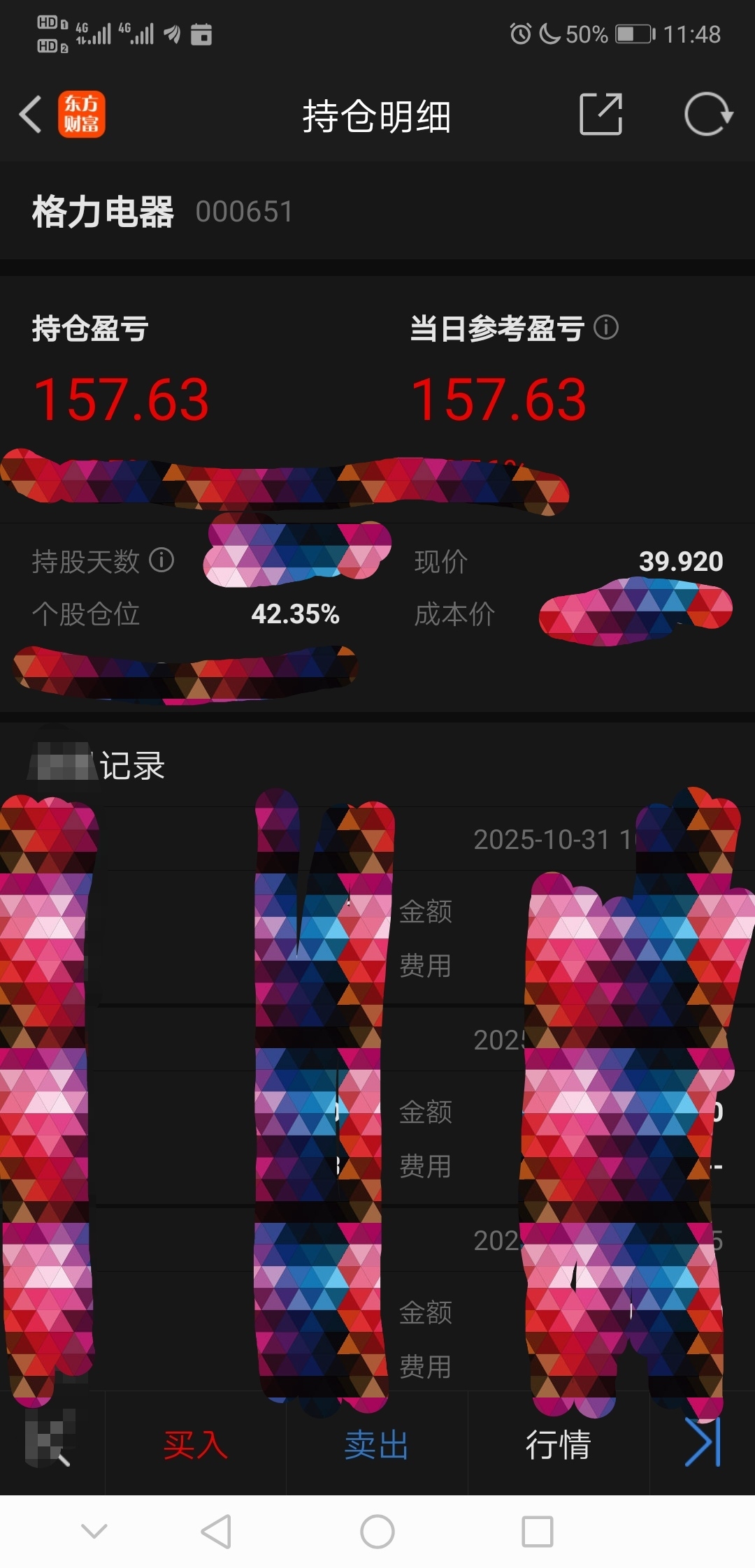格力电器,早盘加到42%仓位,按现在股价39.92元,近几年分红20元~30元,