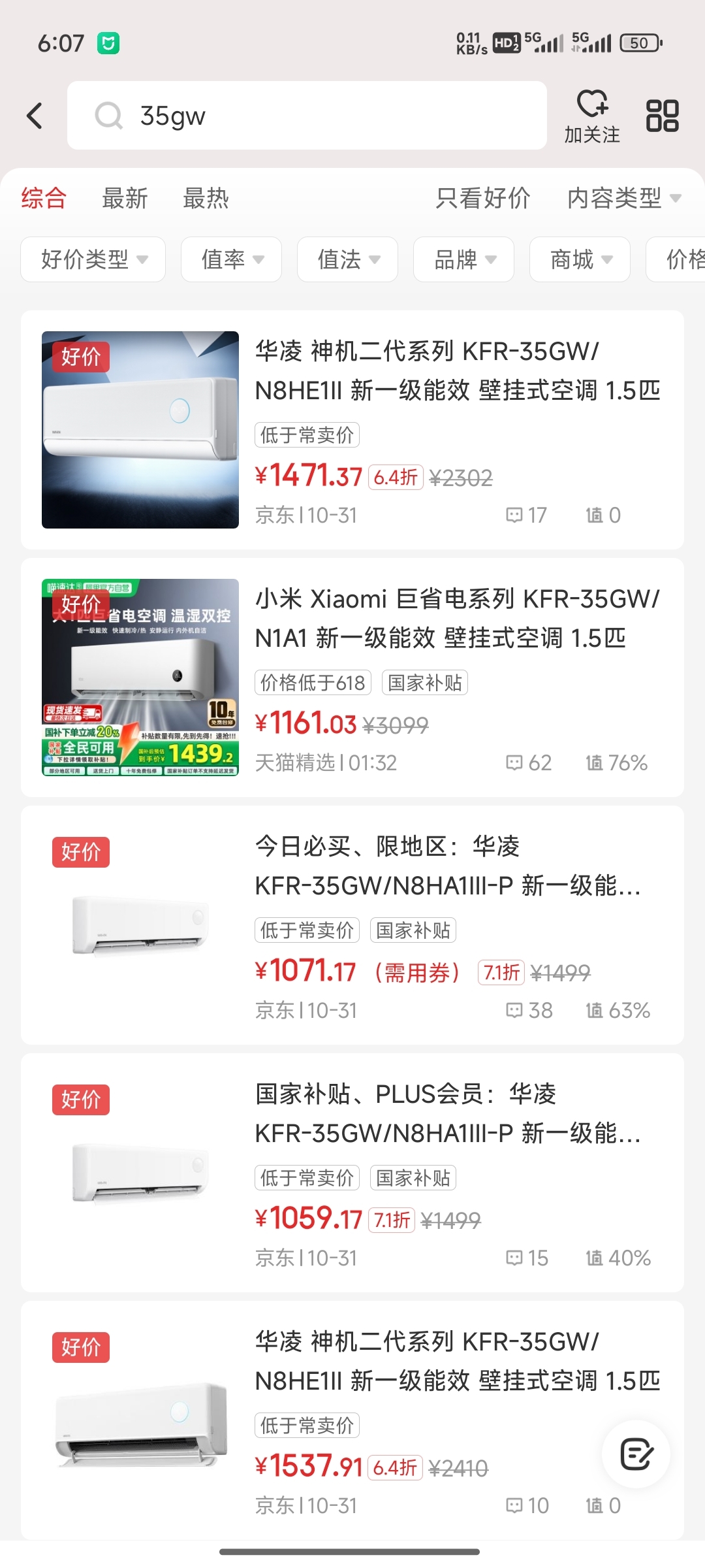 $格力电器(SZ000651)$ $美的集团(SZ000333)$ $值得买(SZ300785)$ 双十一开启大幕, 这是值得买搜索35gw出来的结果……