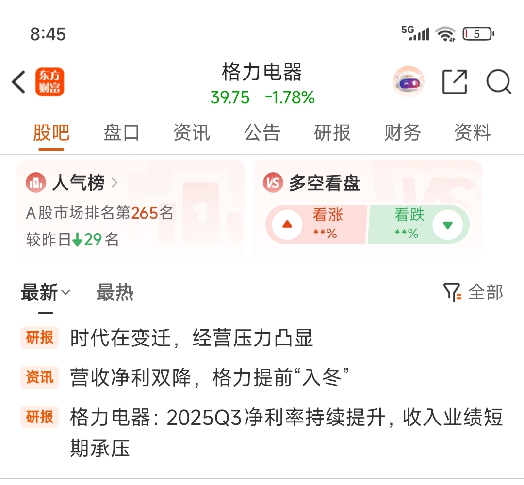$格力电器(SZ000651)$ 配合得真好,都是负面消息