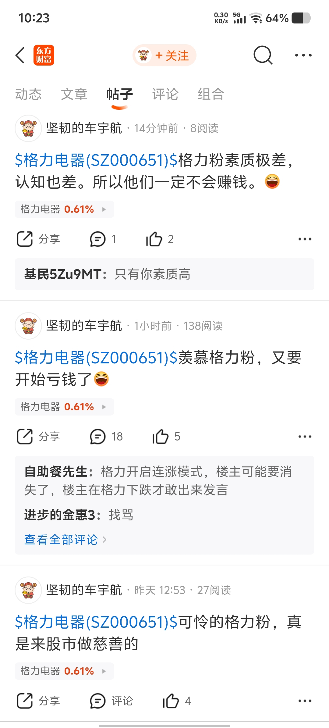 $格力电器(SZ000651)$ 我咋想不通还有这种人,也不知从那个医院跑出来的!股价一跌跟吃蜜了一样,整天就盼着别人亏钱!
