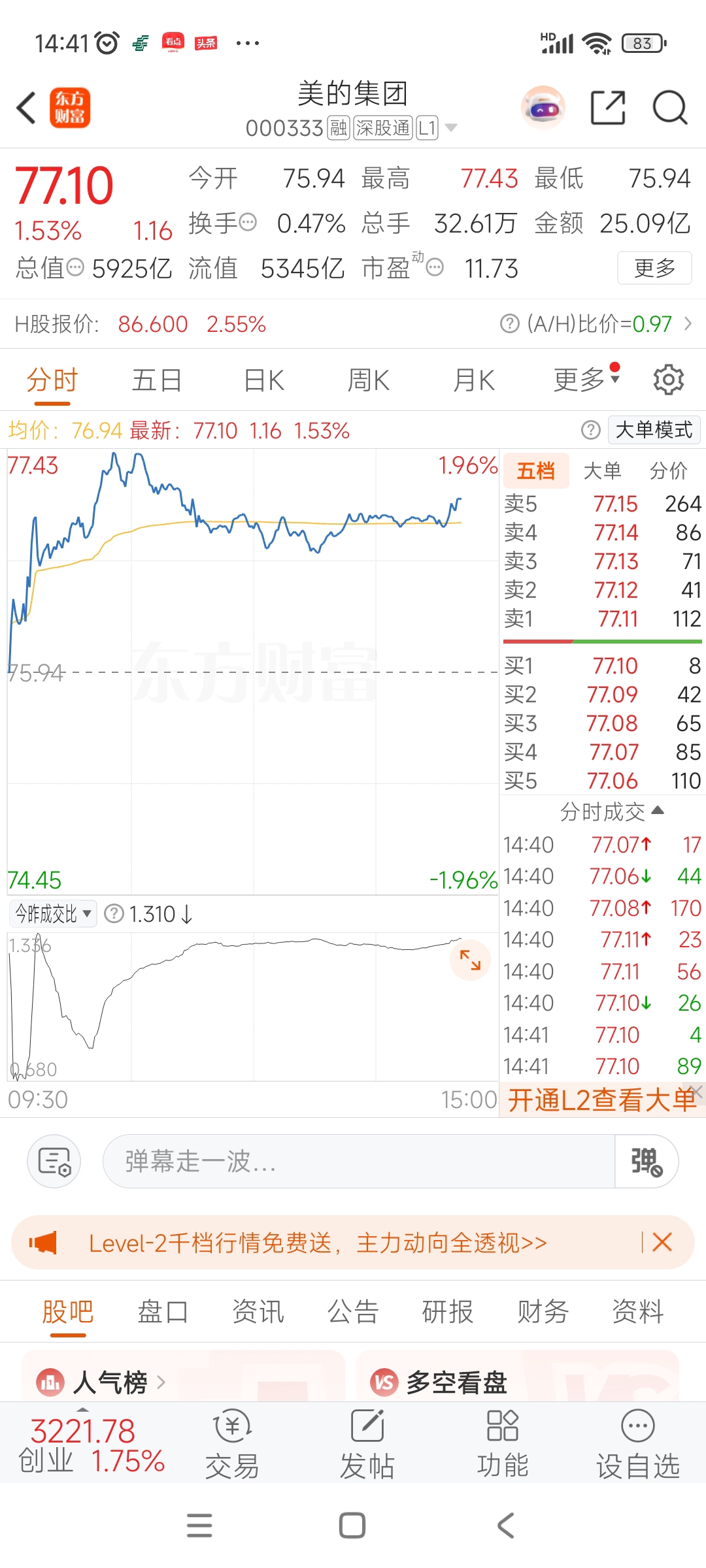 $格力电器(SZ000651)$ 美的股价己快是格力2倍