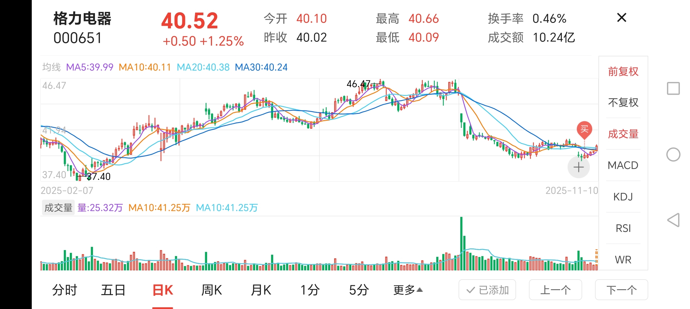 $格力电器(SZ000651)$ 主力,涨到46就把我的筹码给你,主力加油。