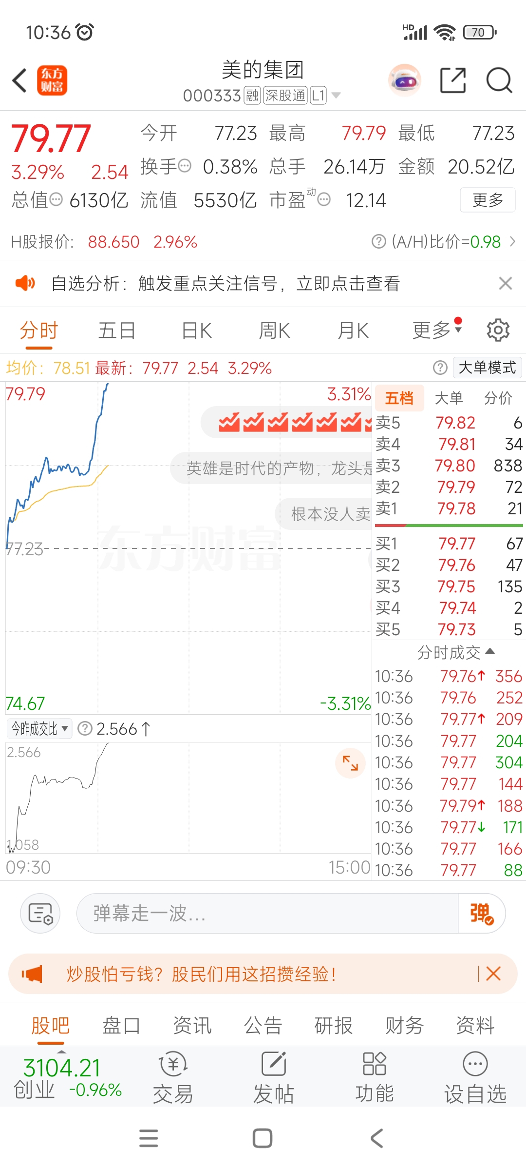 $格力电器(SZ000651)$ 美的集团股价将突破每股80元