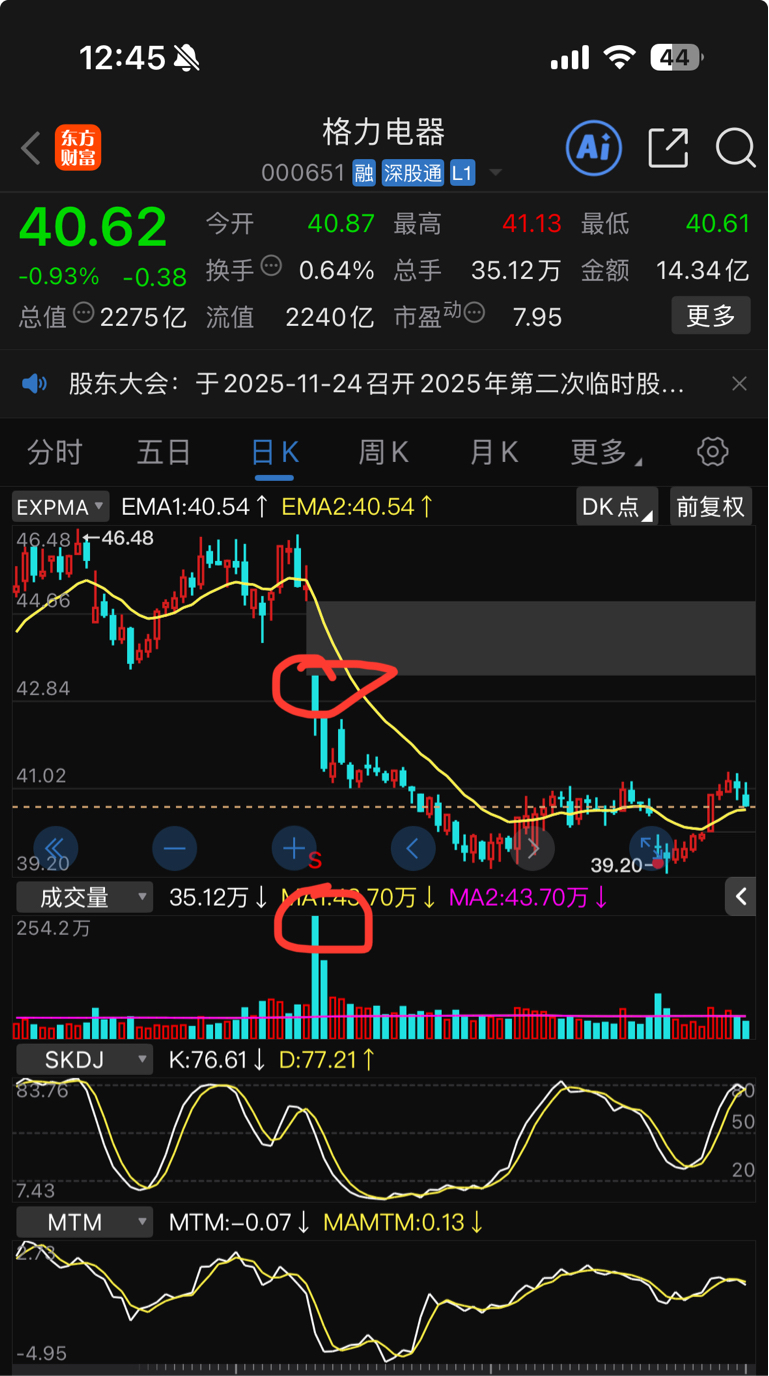 $格力电器(SZ000651)$ 世纪大顶,43.88估计迈不过去了,反弹了还是逃命要紧