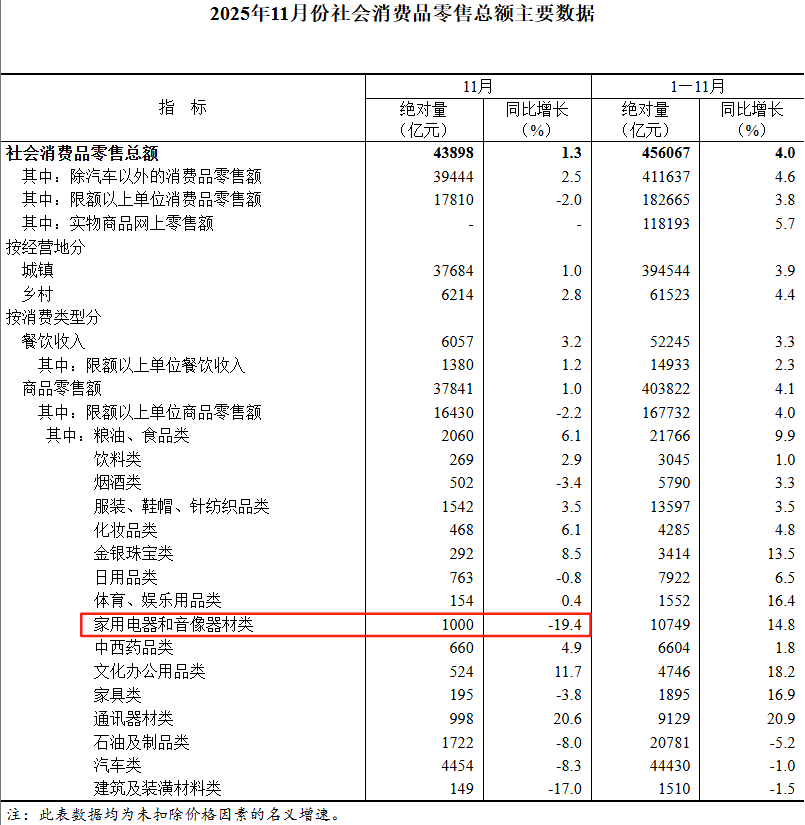家用电器11月社零增速同比-19.4%,降幅相比10月的-14.6%进一步扩大,预计明年一季度-三季度大概率维持负增长,主要是过去一年需求透支太多。