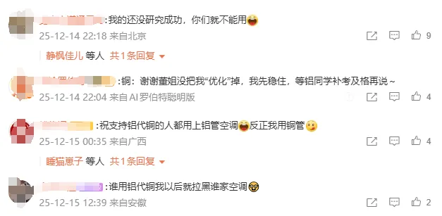 一下子很多网友出来站位,“用铝代铜的都是奸商”“以后谁家用铝直接拉黑”“反正我用铜管”...