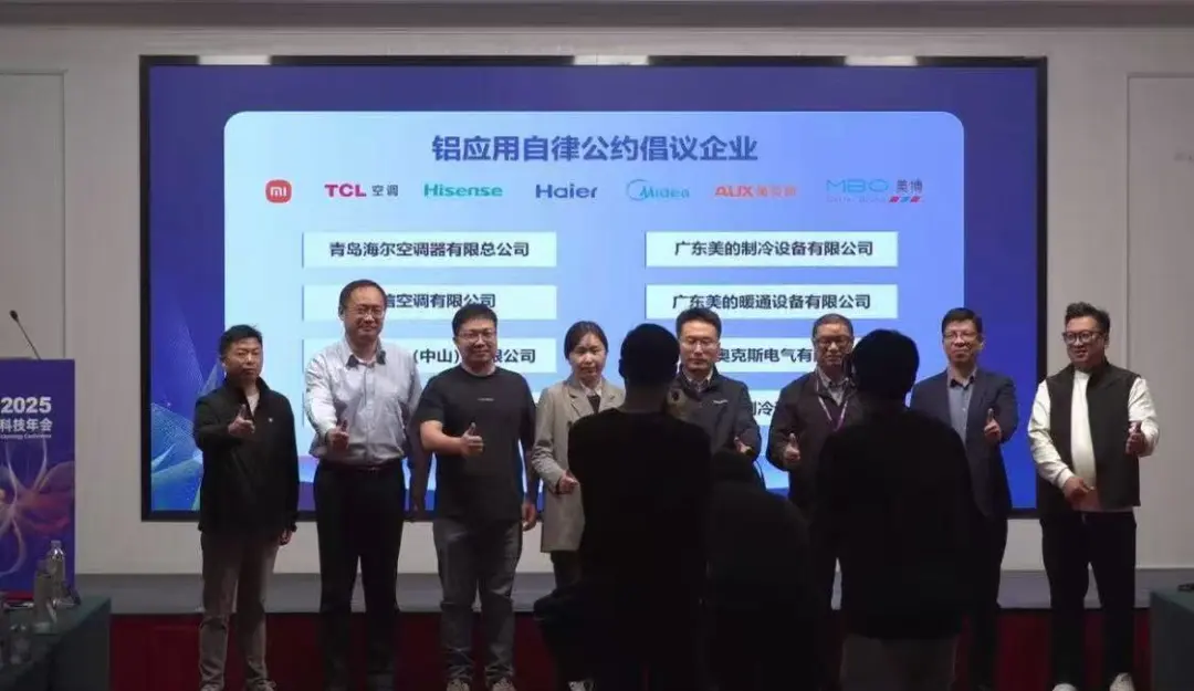 事情是这样的,前几天在2025年中国家电科技年会上,空调圈的几个大佬,海尔、美的、海信、TCL、奥克斯、小米、美博等共同宣布将遵守空调铝强化应用研究工作组自律公约