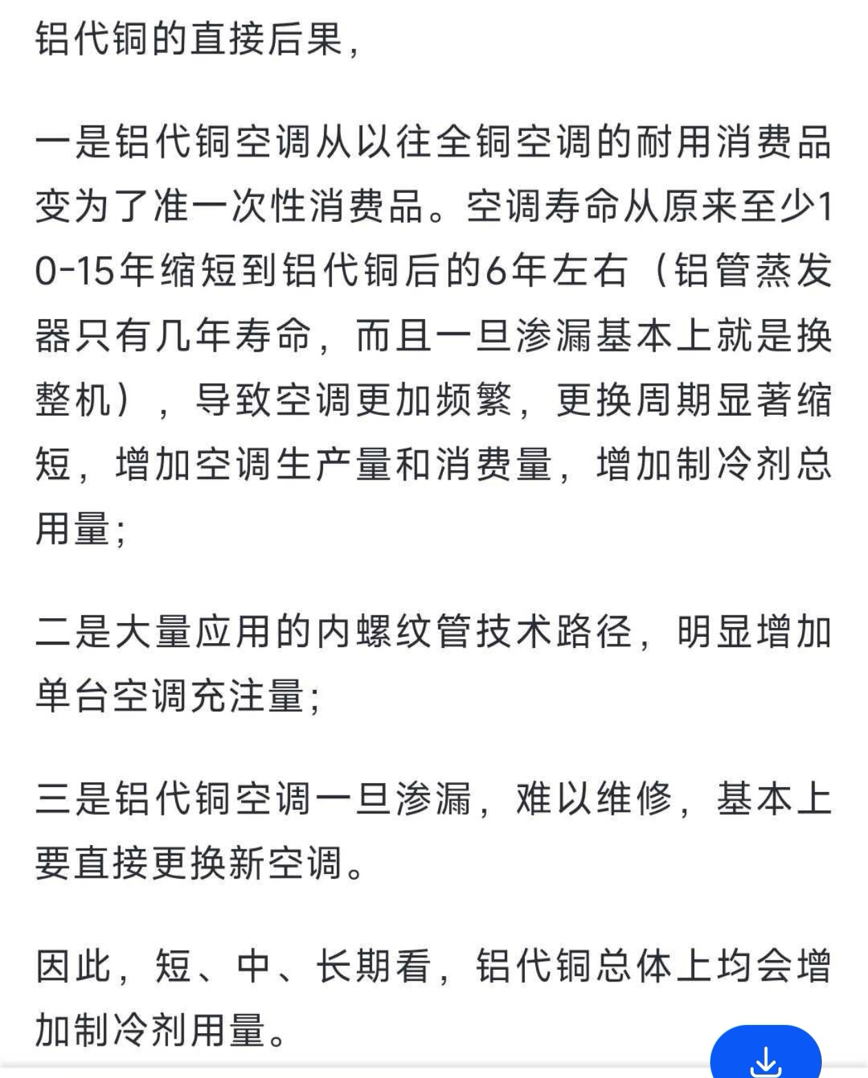 $格力电器(SZ000651)$ 铝代铜利好制冷剂