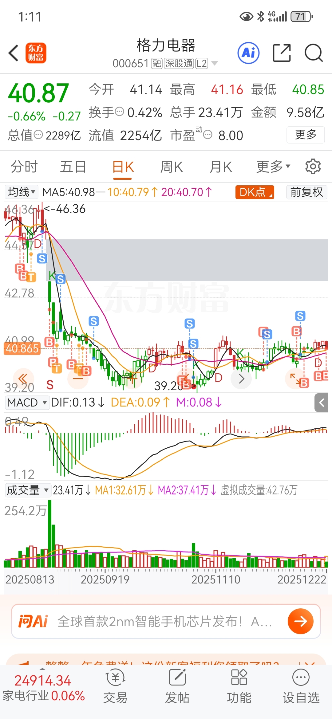 不以物喜不以己悲,看好就买,不看好就卖,格力不涨,最起码不会暴跌,临近年底,稳定