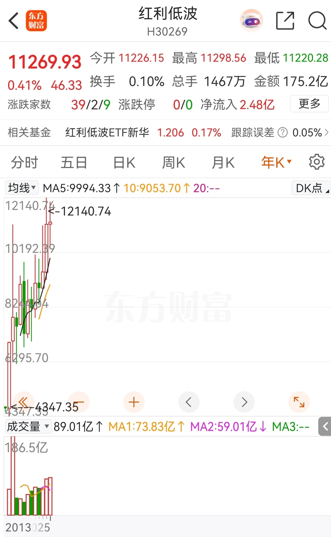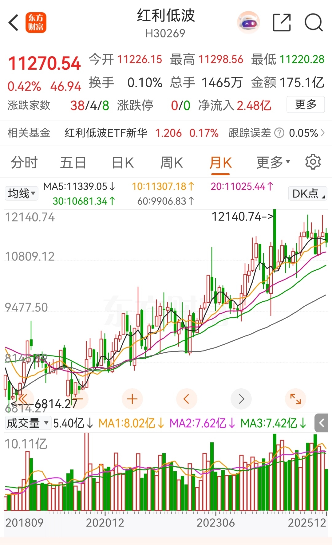 格力电器完全同步红利低波走势,看看红利低波月线图,年线图走势,妥妥的上涨趋势