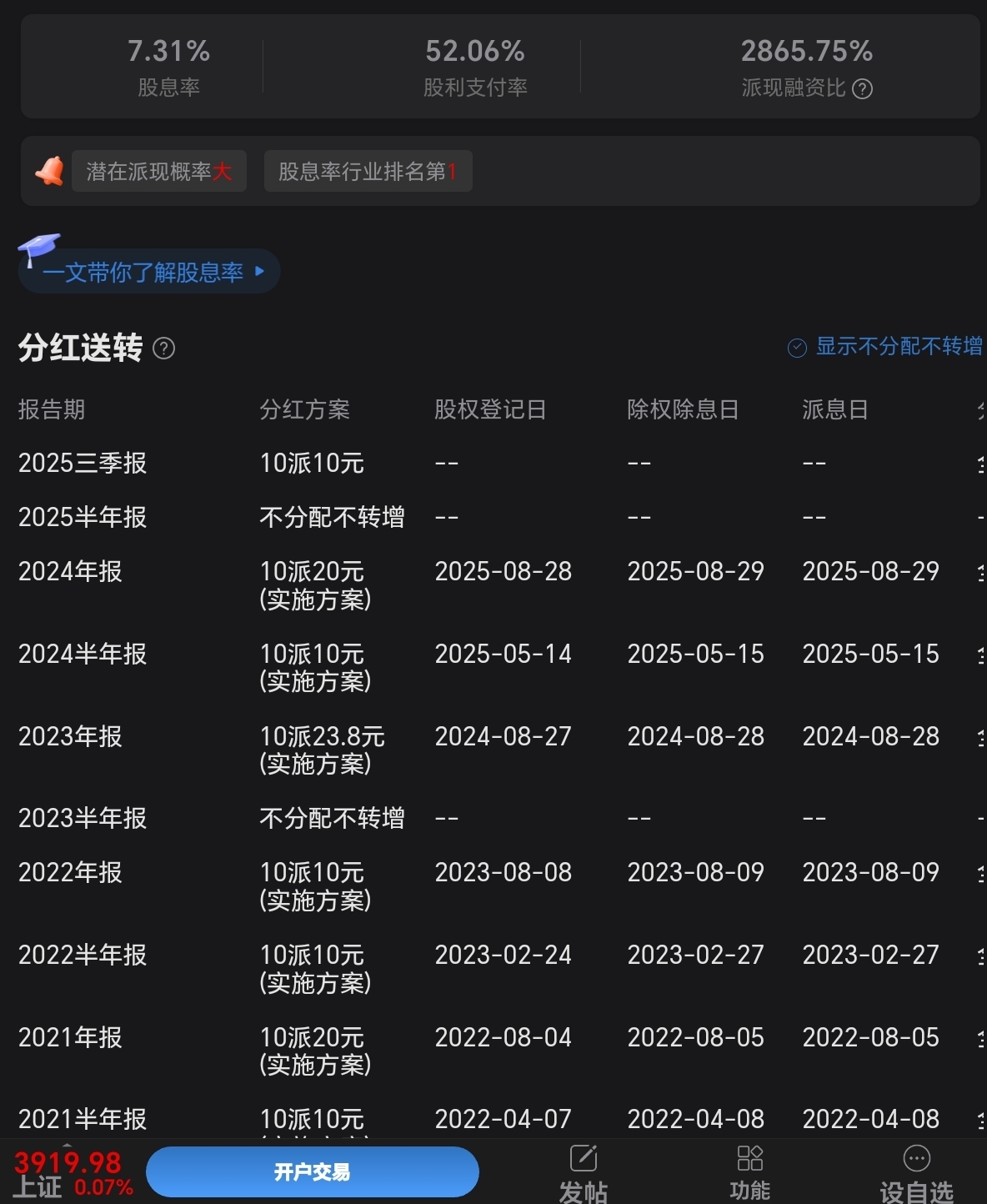 $格力电器(SZ000651)$ 各位老师格力今年分红是多少?比去年少吗?