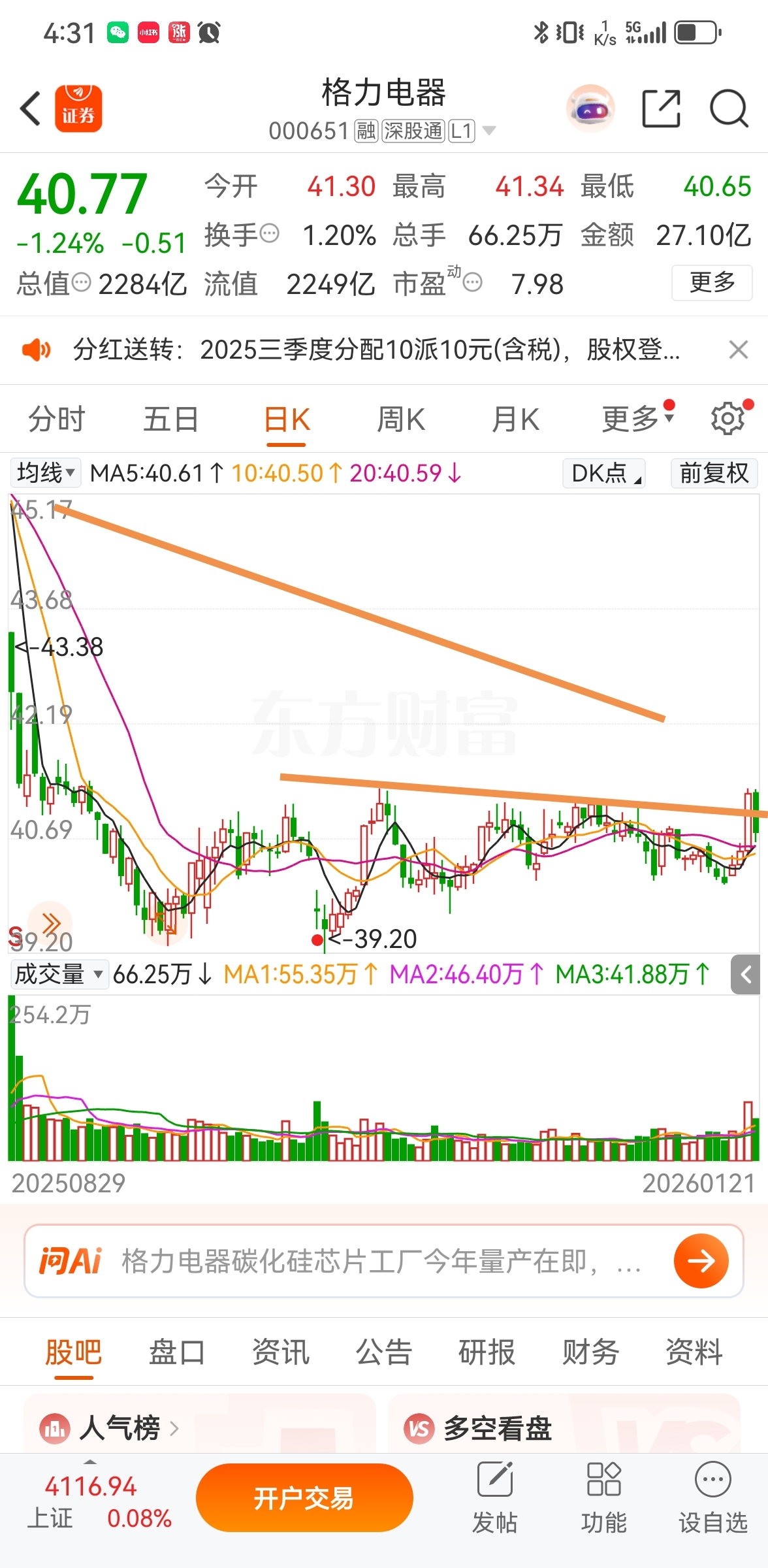 $格力电器(SZ000651)$ 按理说,昨天是个很不错的跃起动作。如果明天反弹回去41附近,那么三个交易日确立回转还是有点儿道理的。毕竟那么大的跳空缺口,吸引力巨大!