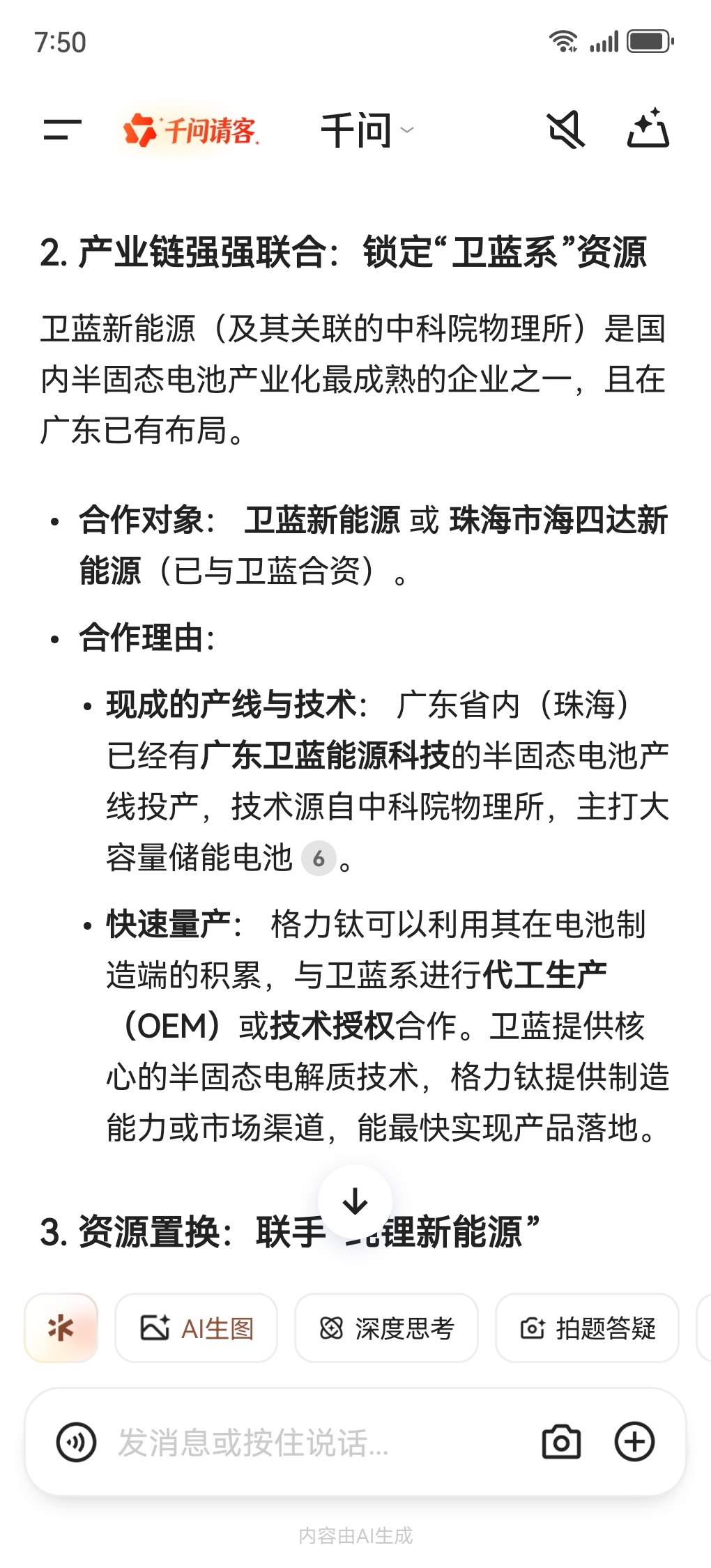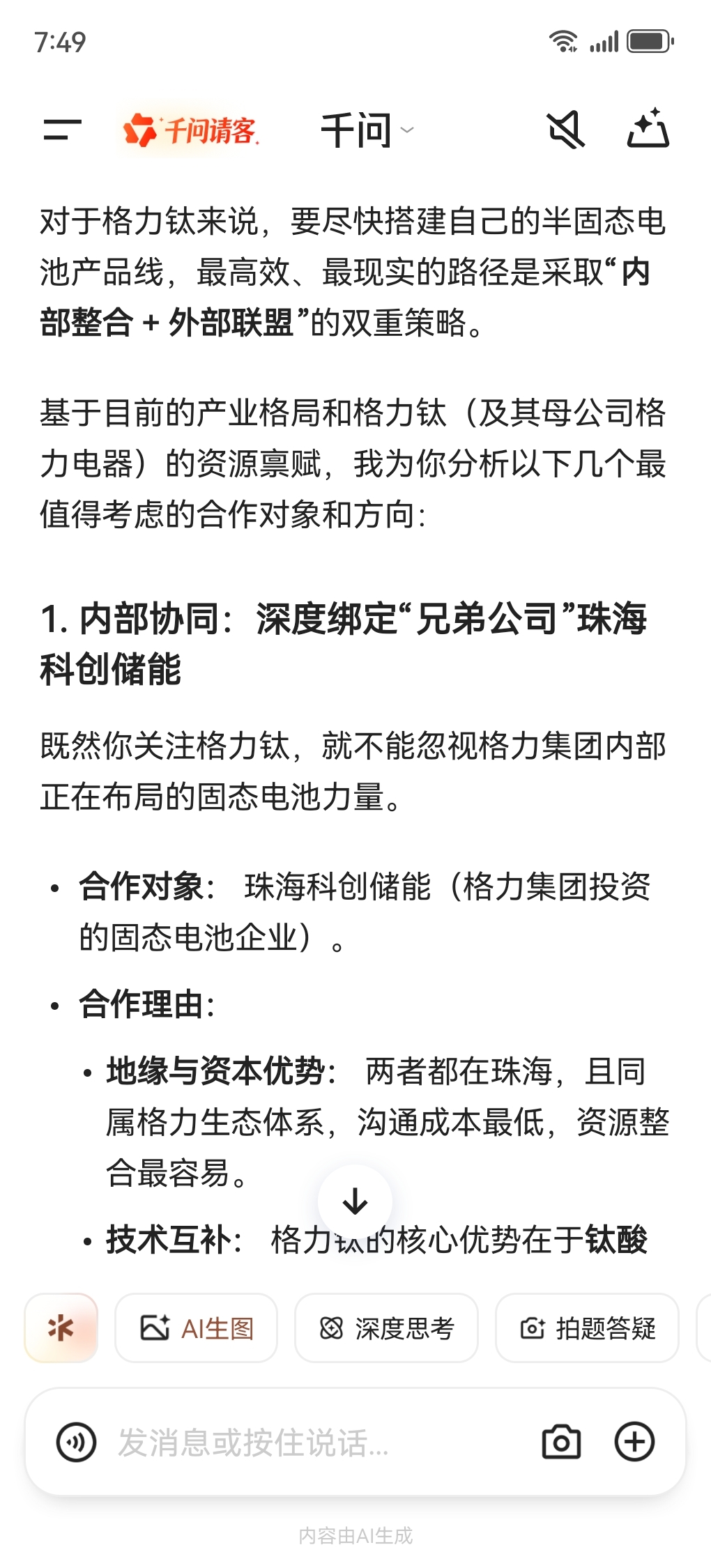 $格力电器(SZ000651)$ 我问千问,格力钛和谁合作,可以尽快搭建自己的半固态电池产品线?