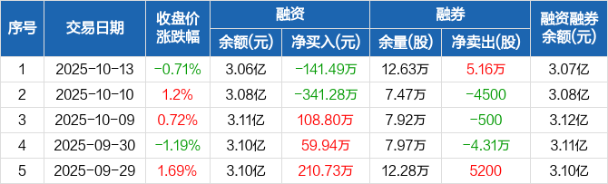 泰达股份:融资净偿还141.49万元,融资余额3.06亿元(10-13)