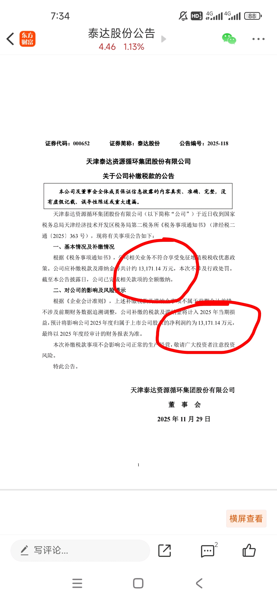 $泰达股份(SZ000652)$ 年报亏损妥妥的!利润减少1.3亿!!!一个跌停走起!!!万幸不是证监会的监管涵!!!只是偷税漏税的问题????负债率太高85比房地产都高……雷声滚滚长江东逝水!