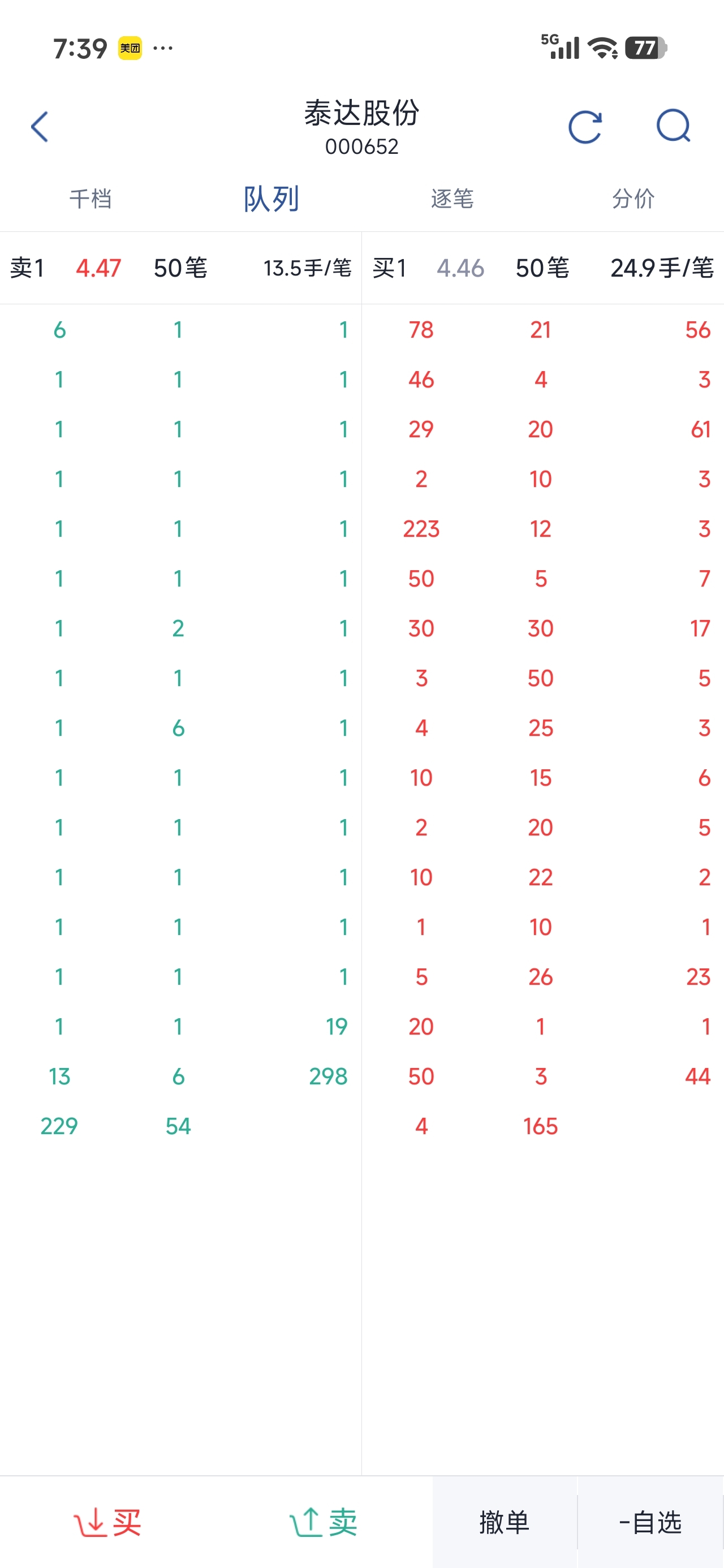 $泰达股份(SZ000652)$ 量化交易吗?这么猛,全部一手