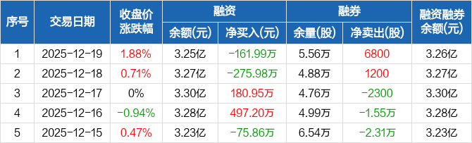 泰达股份:融资净偿还161.99万元,融资余额3.25亿元(12-19)