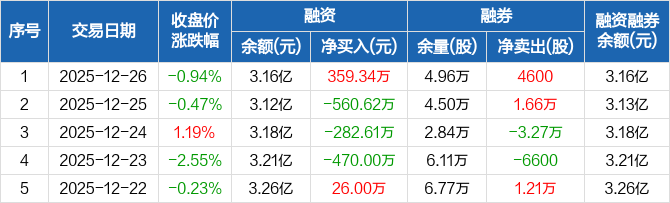 泰达股份:融资净买入359.34万元,融资余额3.16亿元(12-26)