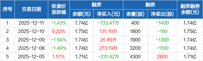 金岭矿业:融资净偿还133.47万元,融资余额1.74亿元(12-11)