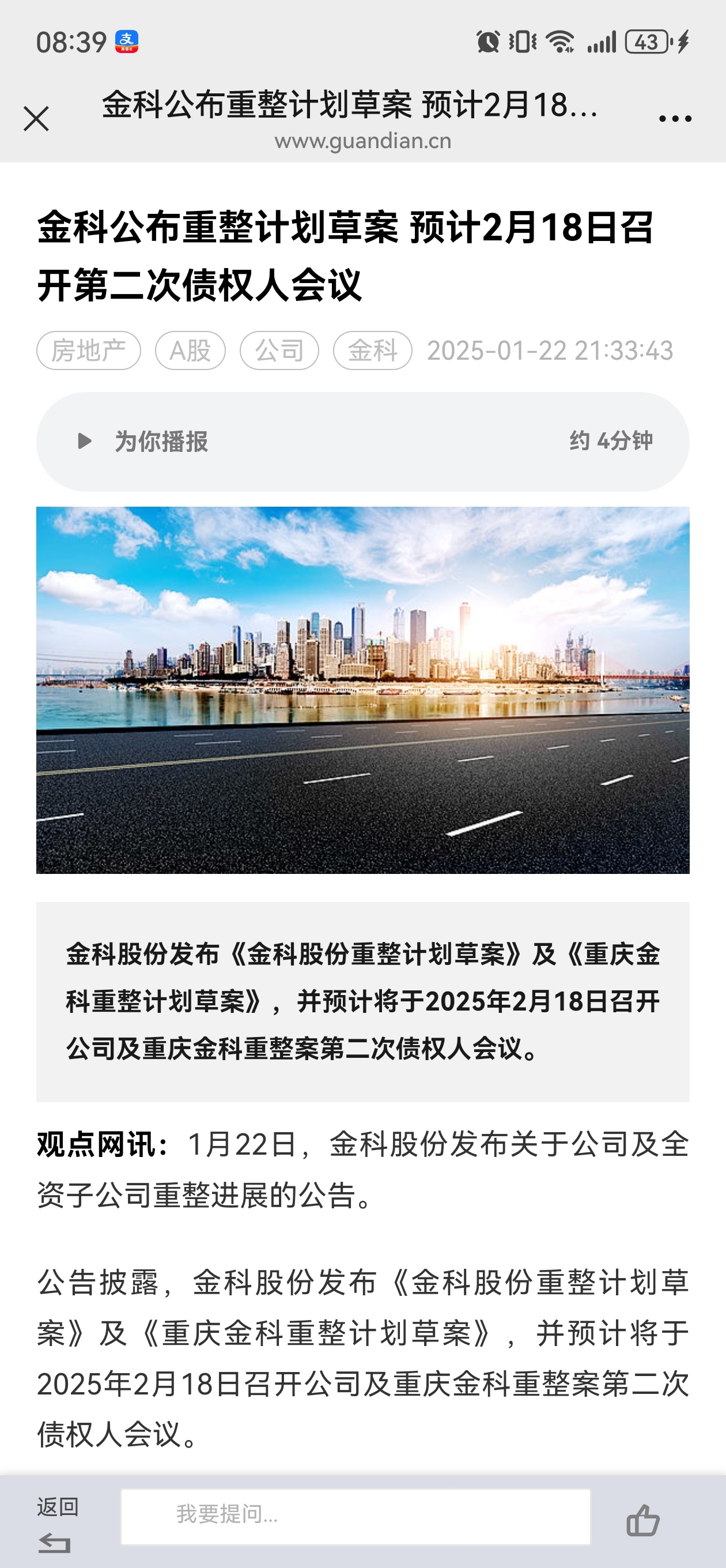 金科公布重整计划草案,重整成功在即!