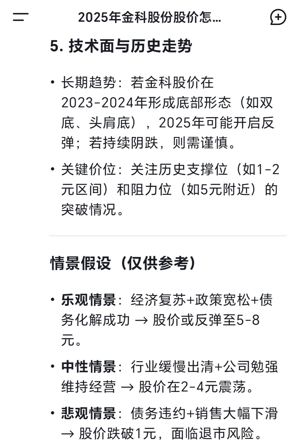最好的人工智能给出来的值得我们知道参考!2025年度金科股份股价分三种可能!优秀