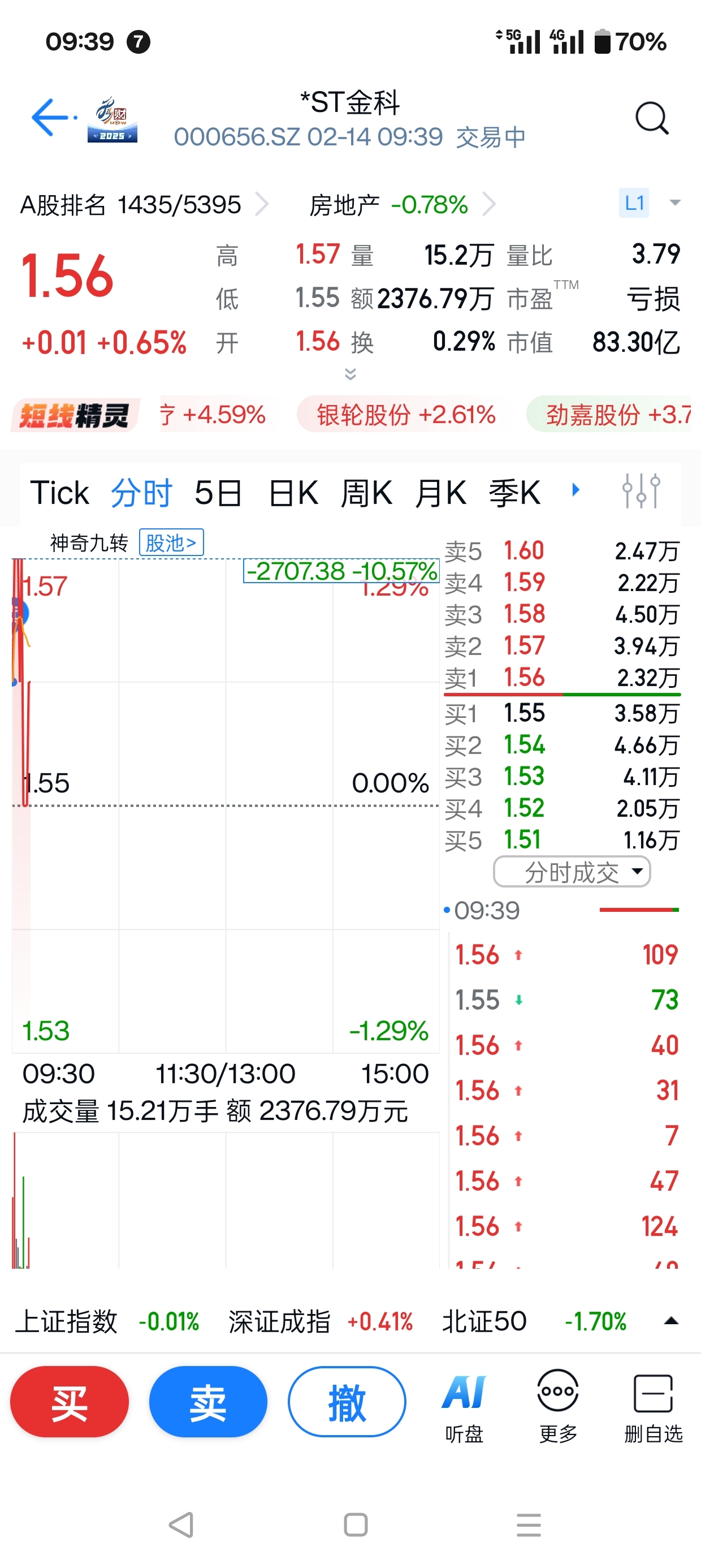 $*ST金科(SZ000656)$ 杀跌,卖出,借利好出货。