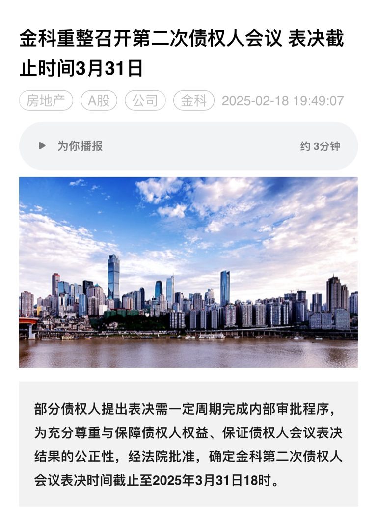 $*ST金科(SZ000656)$ 二债会开完,债权人尤其是大型金融机构投票是需要走流程 截止时间是3月31日,走到这一步过往上市公司主体重整案例是100%成功,金科重整肯成功