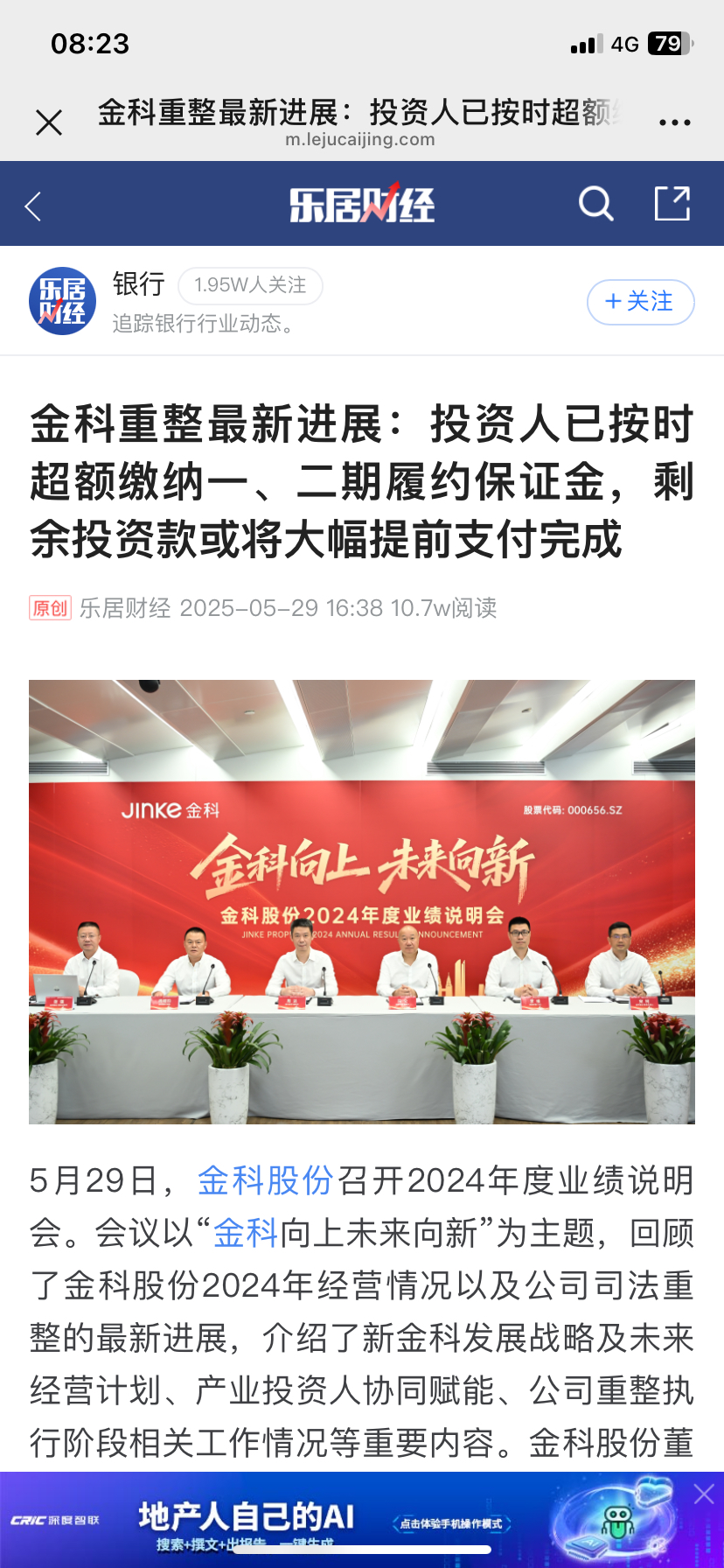 $*ST金科(SZ000656)$ 金科重整最新进展:投资人已按时超额缴纳一期、二期履约保证金共计约14亿元