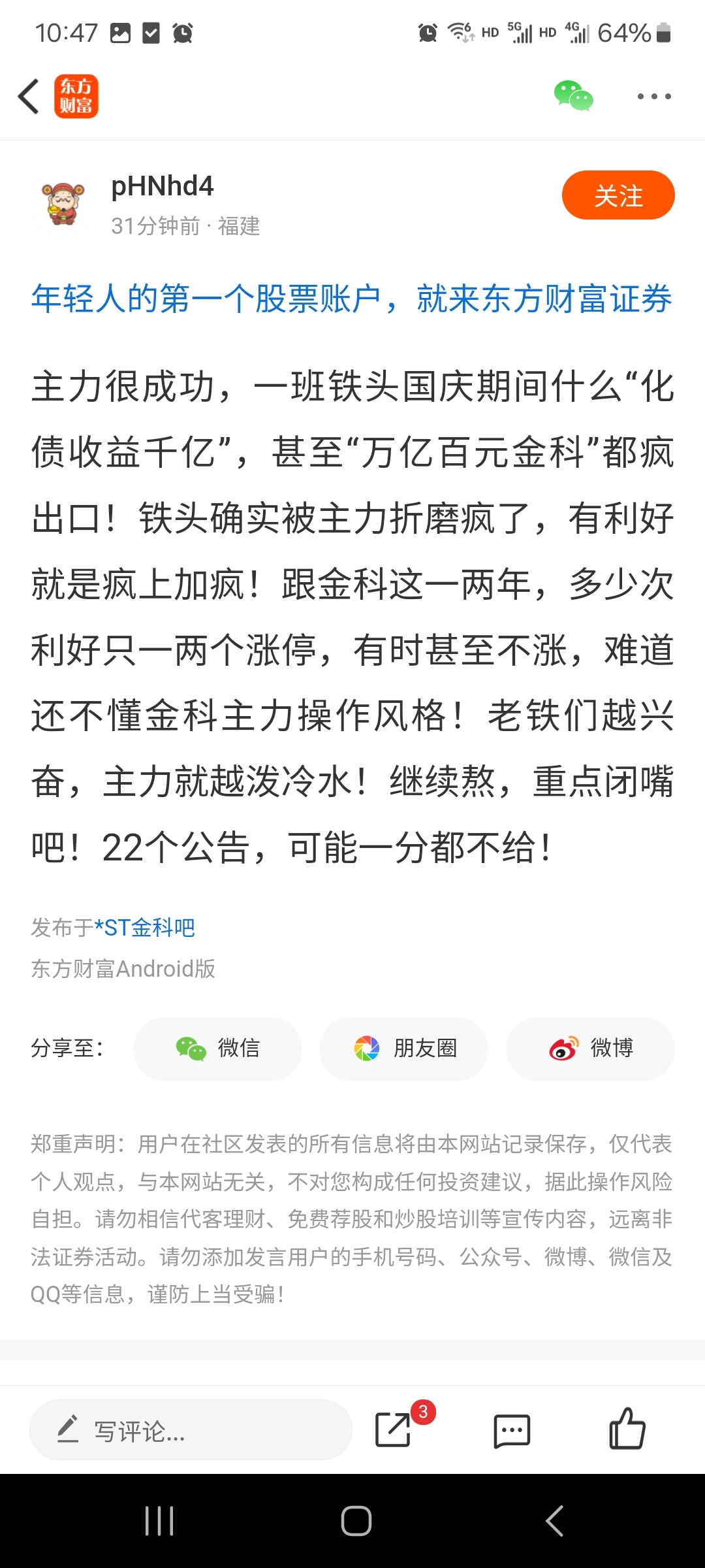 温馨提示: 1.根据《证券法》规定,禁止编造、传播虚假信息或者误导性信息,扰乱证券市场;2.用户在本社区发表的所有资料、言论等仅代表个人观点,与本网站立场无关,不对您构成任何投资建议。用户应基于自己的独立判断,自行决定证券投资并承担相应风险。《东方财富社区管理规定》
