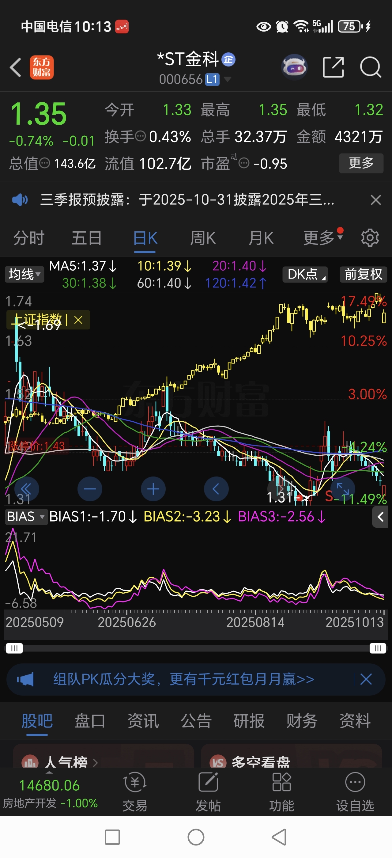 $*ST金科(SZ000656)$ 看看指数和金科的走势?气不气