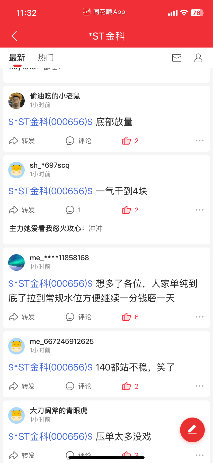 $*ST金科(SZ000656)$ 几分钟一条评论不是盖的,同花顺散户也不少