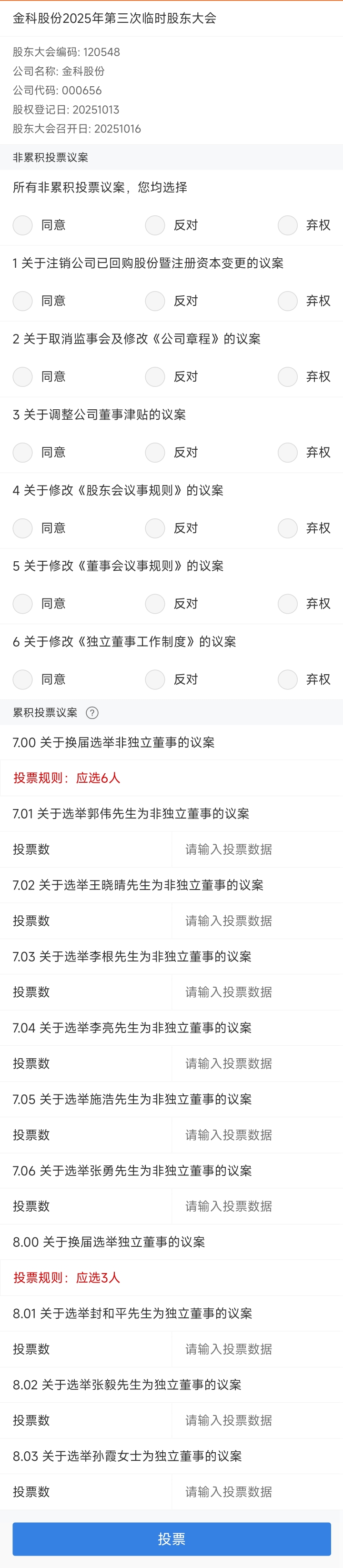 $*ST金科(SZ000656)$ “请输入投票数据”这里怎么填?