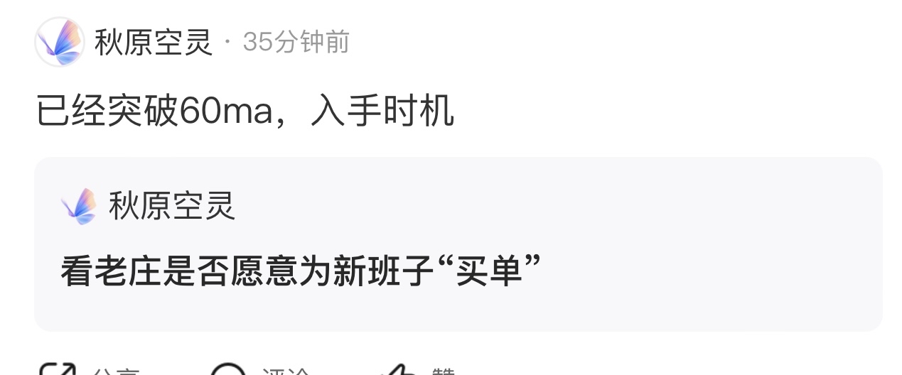 温馨提示: 1.根据《证券法》规定,禁止编造、传播虚假信息或者误导性信息,扰乱证券市场;2.用户在本社区发表的所有资料、言论等仅代表个人观点,与本网站立场无关,不对您构成任何投资建议。用户应基于自己的独立判断,自行决定证券投资并承担相应风险。《东方财富社区管理规定》