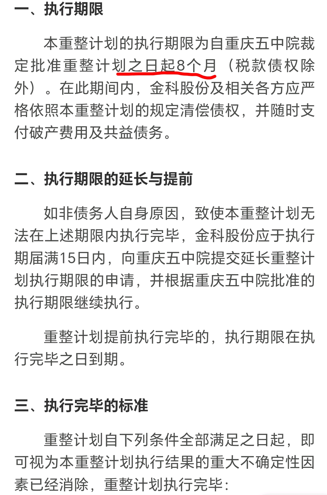 5/12执行重整计划,1/12之前执行完毕。1/15号年报预估,恐吓负资产要退市