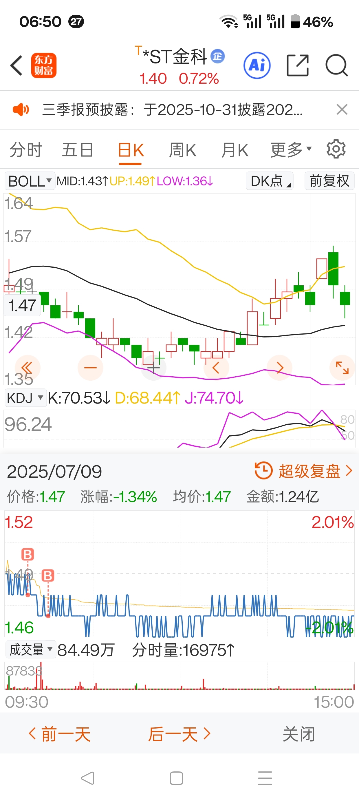 $*ST金科(SZ000656)$ 连续下跌的金科是不能买的,那些个,越跌越买的,人,比如说说马丁战法的,人,操作了吗?参与操作的效果好吗?只有看到连续上涨后,才可以考虑用马丁战法,越跌越买。做个示范,七月九日,金科连续下跌两天,越跌越买,买了以后次日卖出。