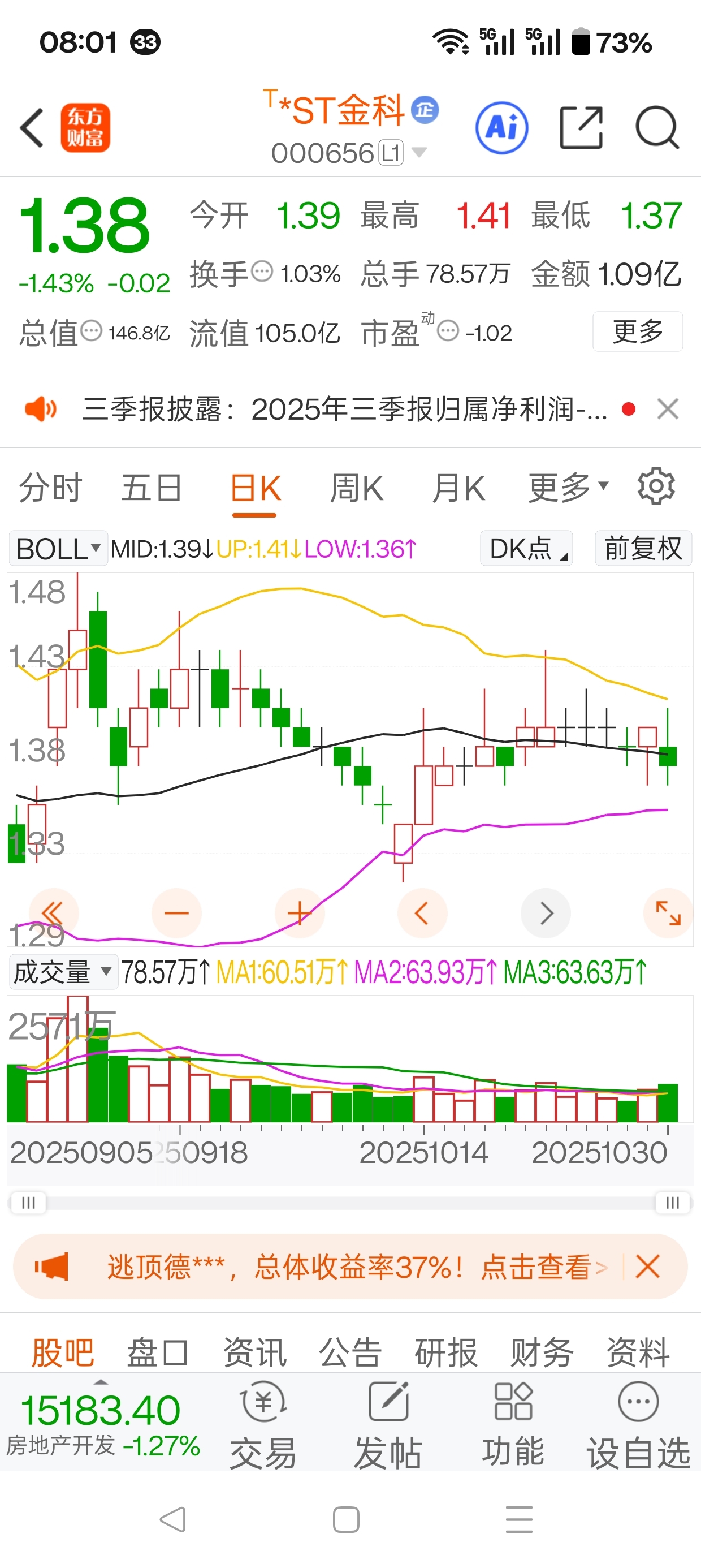 $*ST金科(SZ000656)$ 今天跌一分钱,买入。