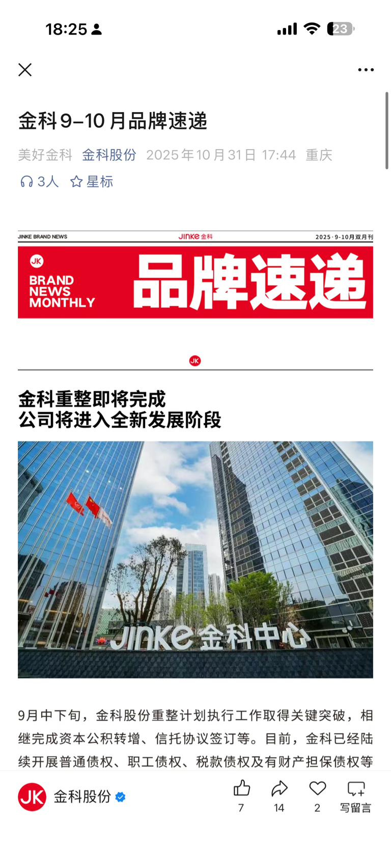 $*ST金科(SZ000656)$ 官方定调了,即将完成。