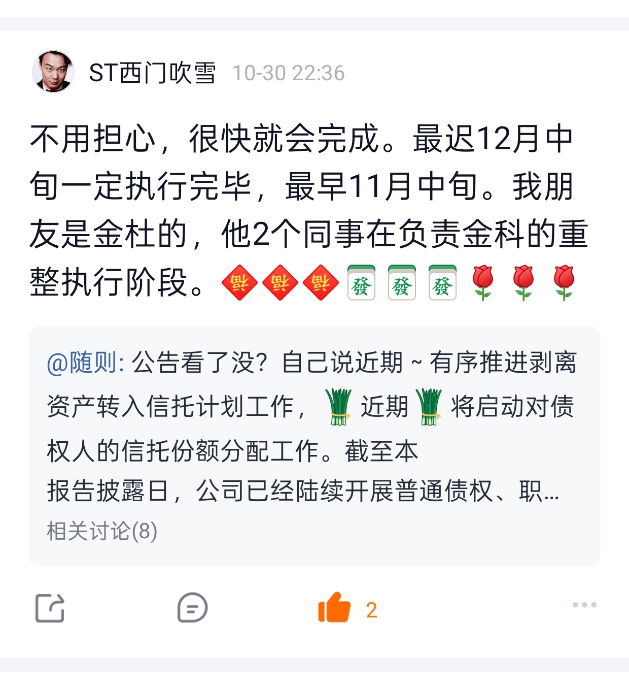 $*ST金科(SZ000656)$ 再忍忍就过去了,随时完成重整