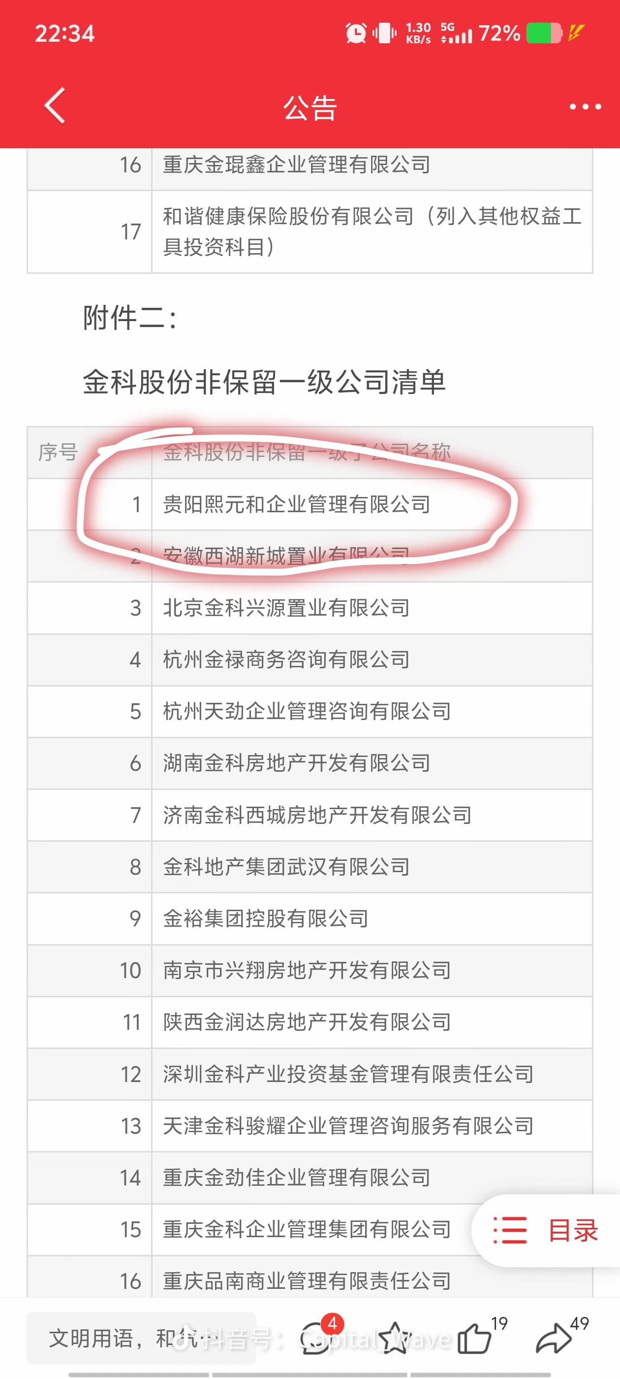 你等着重整官方文件里,$*ST金科(SZ000656)$和重庆金科,剥离包里所列的公司名单,工商信息大股东全剥离变更,金科退市了也完成不了!所以你的关注目标是错的!不是我指导你,但是你确实错了!