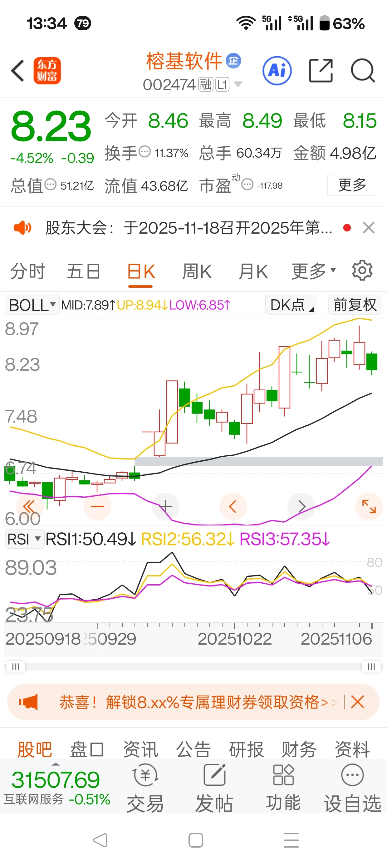 $*ST金科(SZ000656)$ 用马丁战法买这个,今天买一部分,明天再买一份。榕基软件