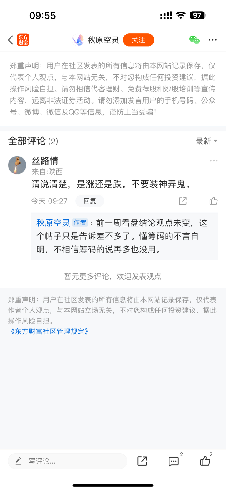 温馨提示: 1.根据《证券法》规定,禁止编造、传播虚假信息或者误导性信息,扰乱证券市场;2.用户在本社区发表的所有资料、言论等仅代表个人观点,与本网站立场无关,不对您构成任何投资建议。用户应基于自己的独立判断,自行决定证券投资并承担相应风险。《东方财富社区管理规定》