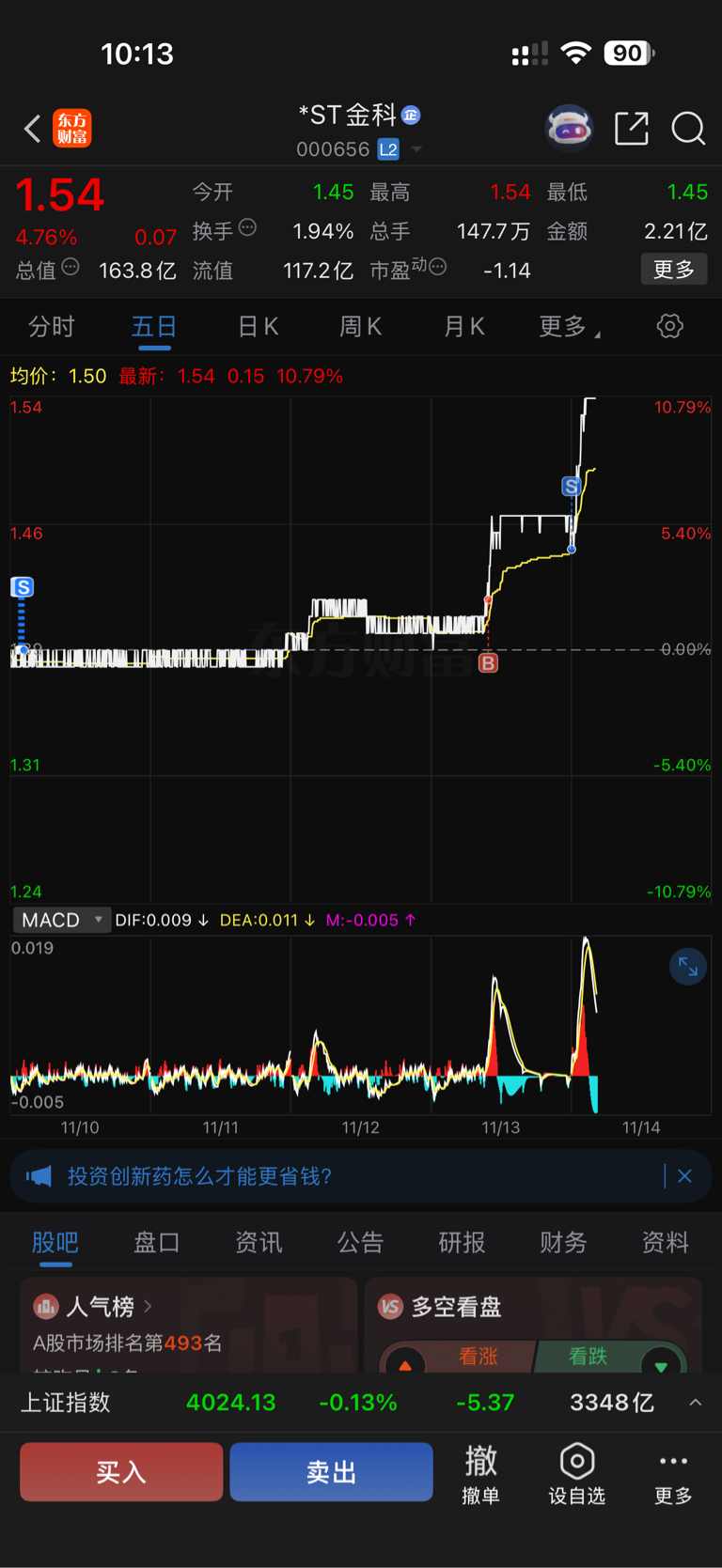 $*ST金科(SZ000656)$ 又飞了s了我吧