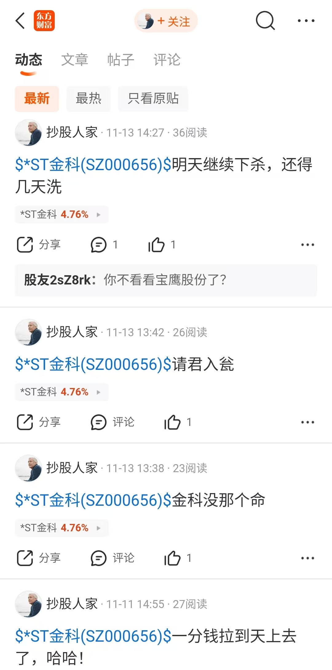 $*ST金科(SZ000656)$ 有些韭菜到股市来不是为了赚钱,纯粹是来搞笑的。