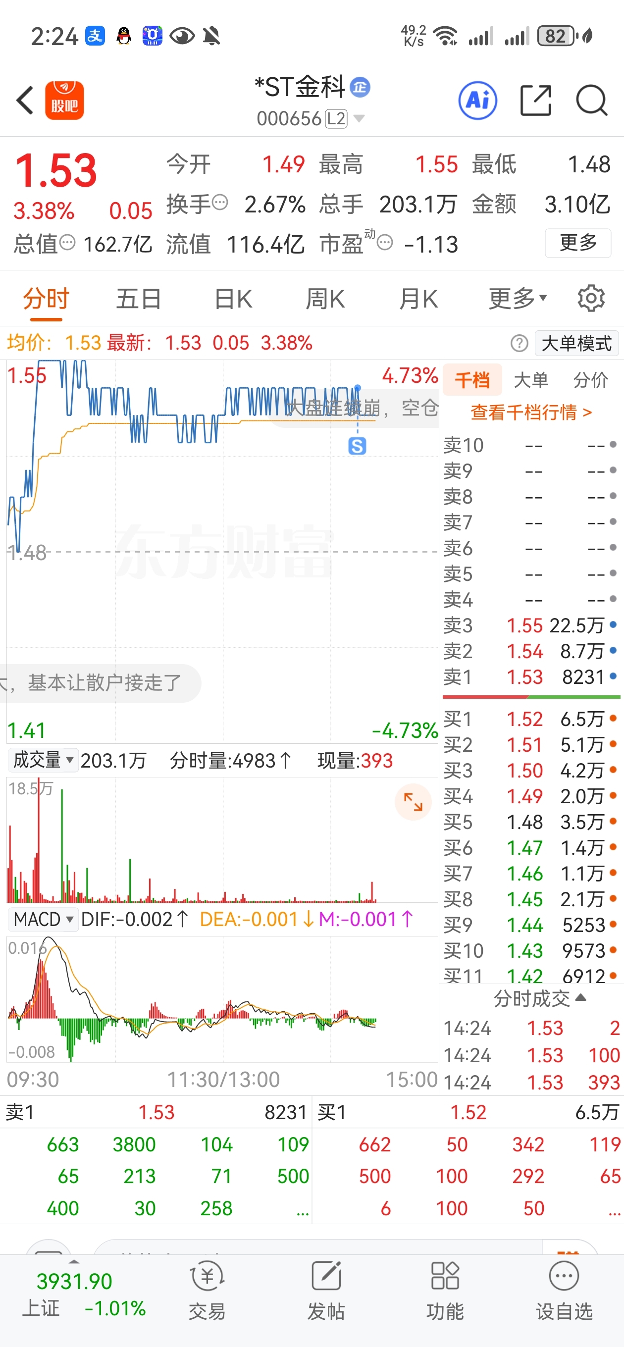 $*ST金科(SZ000656)$ 154跑了,哈哈哈