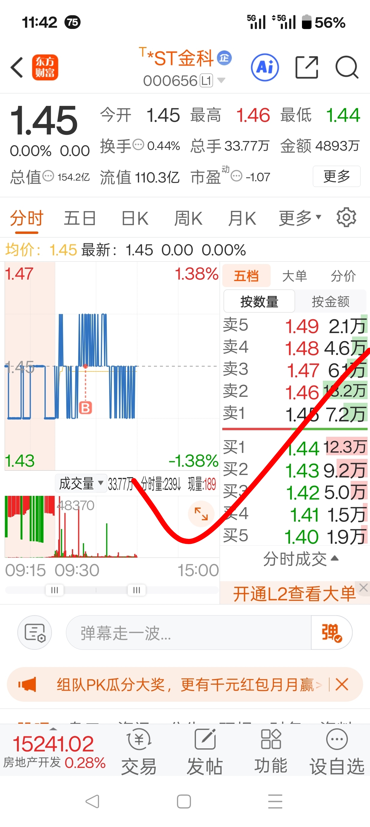 解气啊,解气,1.45卖,1.45接回。好在就一百股,也就亏毛把钱手续费