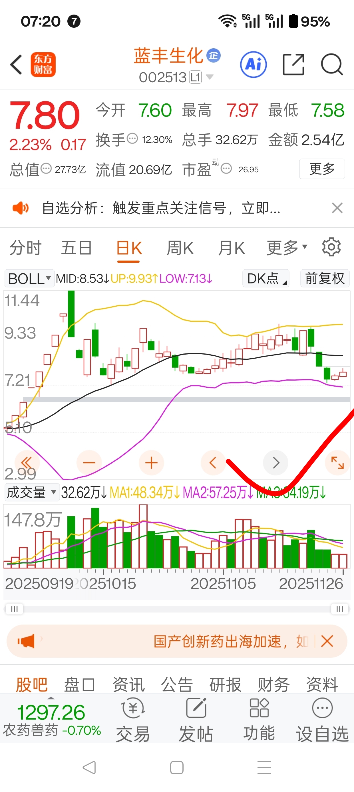 花一天时间买蓝丰生化。这股值得跟踪一下。金科?先出来。