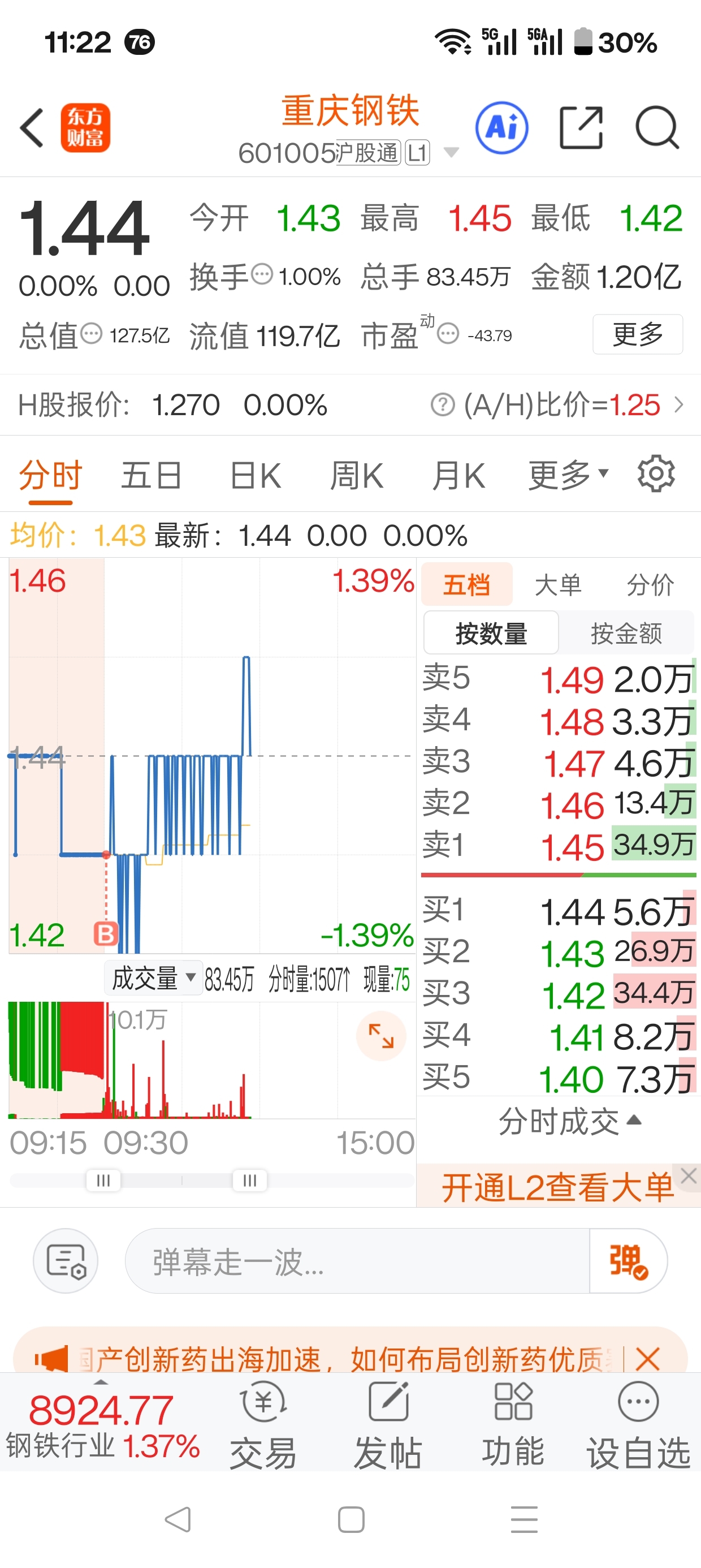 $*ST金科(SZ000656)$ 重庆钢铁起来了,金科离涨还远吗?