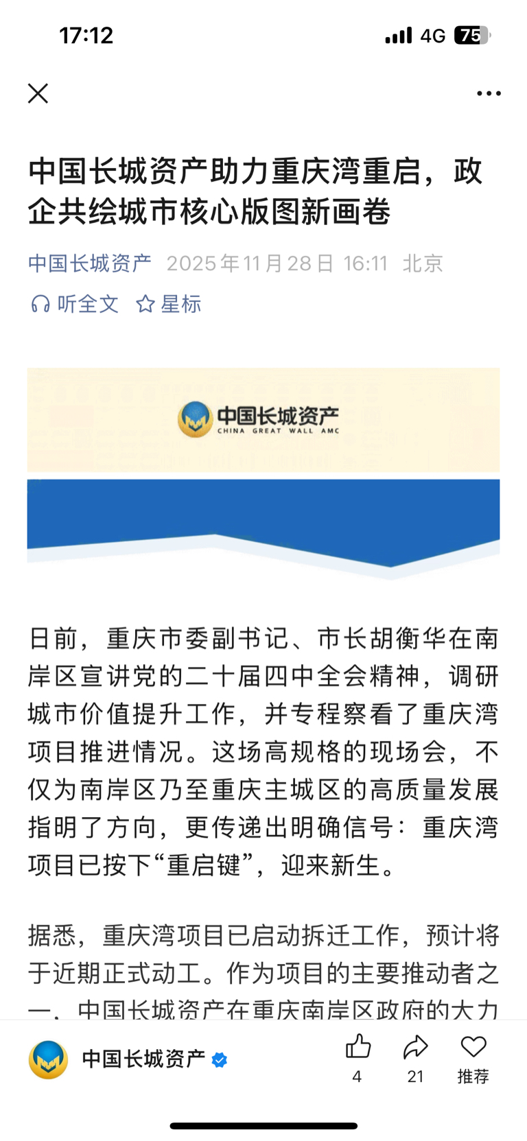 $*ST金科(SZ000656)$ 中国长城也在发利好!