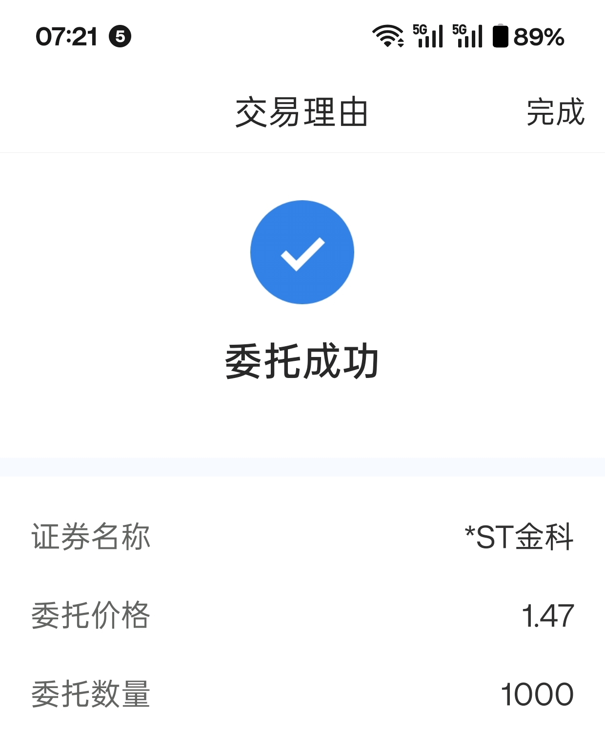 你看,有人嘲笑咱买金科900股少了点,今天那就多买点。这回买1000,够多了吧?