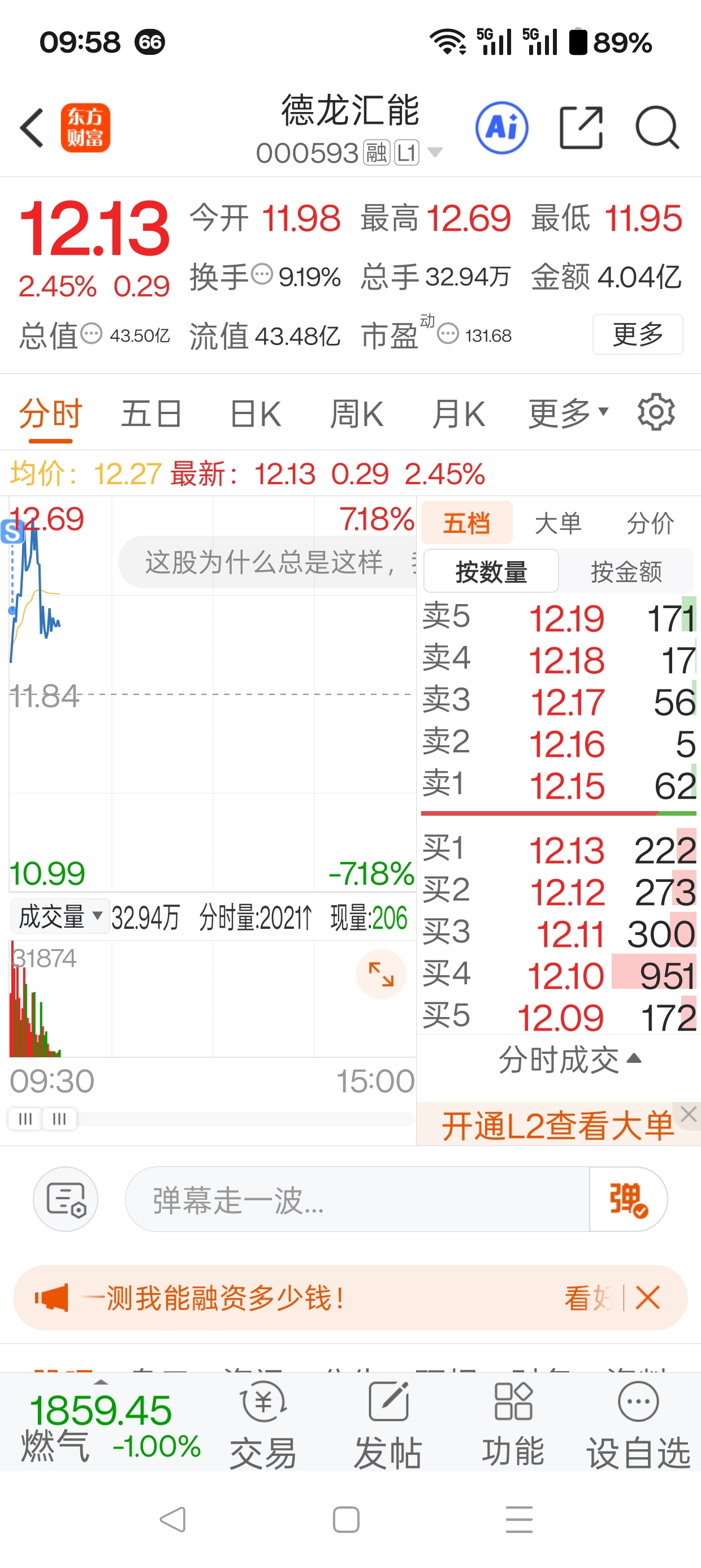 昨天又买德龙,心想今天赚五个点就可以了,那成想,卖了又涨了五个点。气人不?